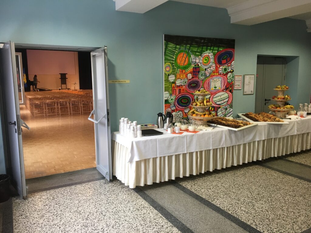 V dvorani je prostor tudi za pogostitev, katero vam z veseljem pripravimo.